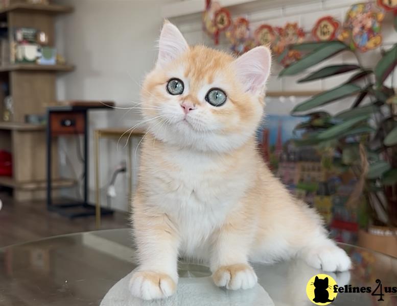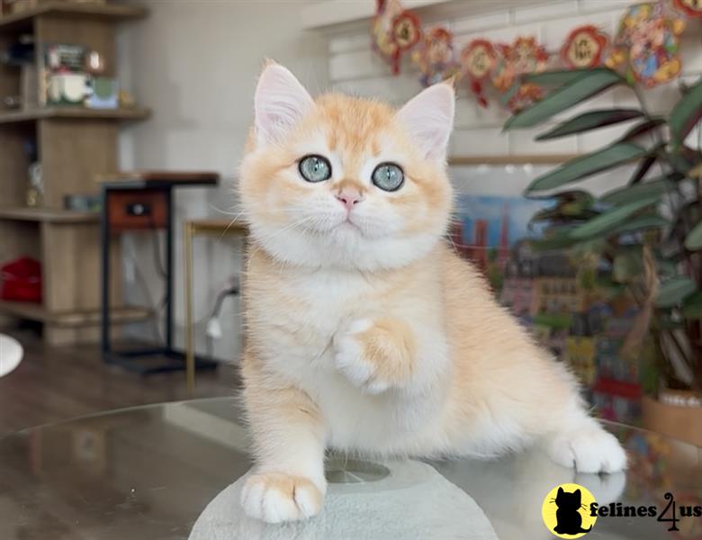 Super stunning Golden Chinchilla ny12 British Shorthair girl with very light sunshine golden color. Her personality is very playful and cuddly and is super sweet and affectionate. Our cats and babies are raised indoor with a completely cage free environment. They are feed with high quality food and are well socialized with people 2 large dogs and other cats. All of our breeding cats are from PKD negative bloodline and had been FIV/FeLV tested with a negative result prior they enter our home and had always being raised as a strictly indoor cats only. Our kittens will be spayed neutered and have complete vaccinations/deworming prior leaving. They will have a complete health exam by my vet and will come with a 1yr genetic health guarantee. TICA Registered Please call or text a 858-900-8818 with any question you have. Follow Us on Our Instagram @thechubbyfacedcat