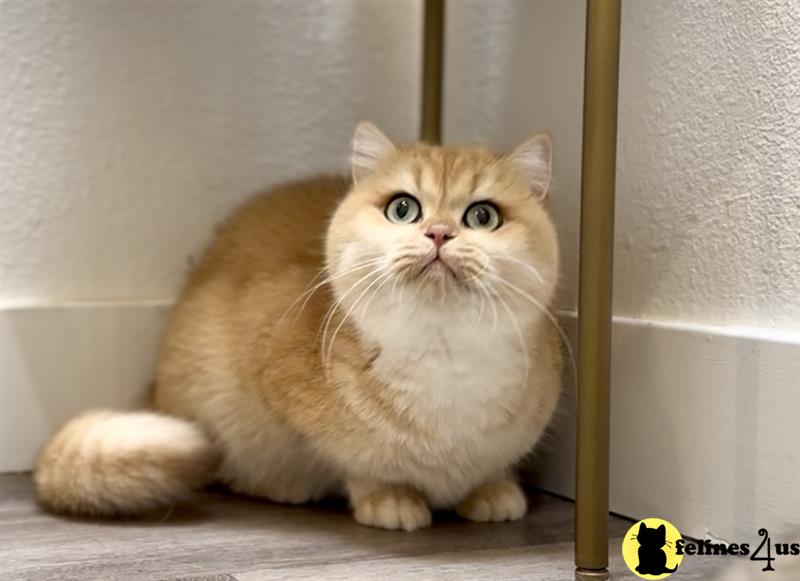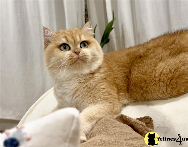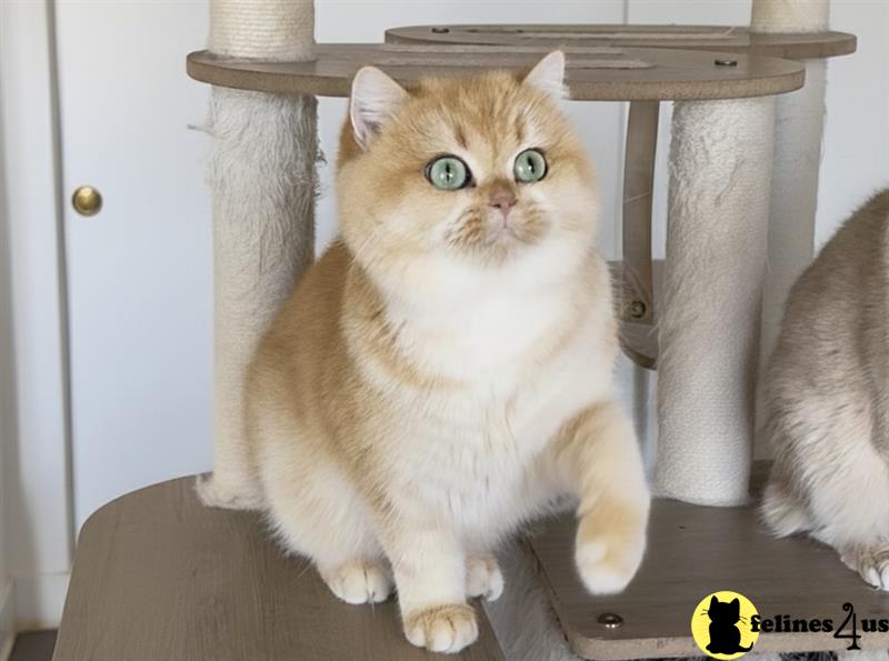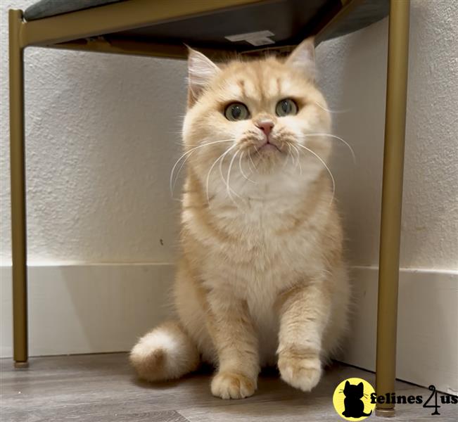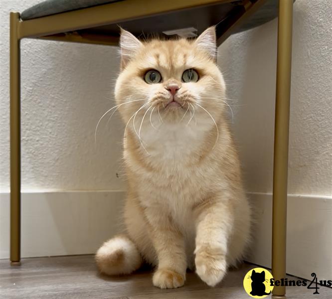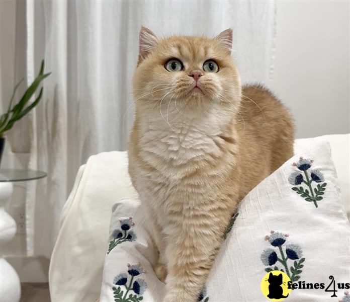 Amazing is a Super stunning Golden Chinchilla ny12 British Shorthair girl with sunshine golden color and beautiful green eyes and super big round cheeks. Her personality is very sweet and affectionate. Our cats and babies are raised indoor with a completely cage free environment. They are feed with high quality food and are well socialized with people 2 large dogs and other cats. All of our breeding cats are from PKD negative bloodline and had been FIV/FeLV tested with a negative result prior they enter our home and had always being raised as a strictly indoor cats only. Our kittens will be spayed neutered and have complete vaccinations/deworming prior leaving. They will have a complete health exam by my vet and will come with a 1yr genetic health guarantee. Please call or text a 858-900-8818 with any question you have. Follow Us on Our Instagram @thechubbyfacedcat