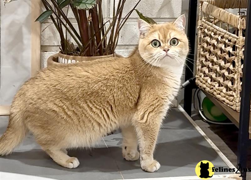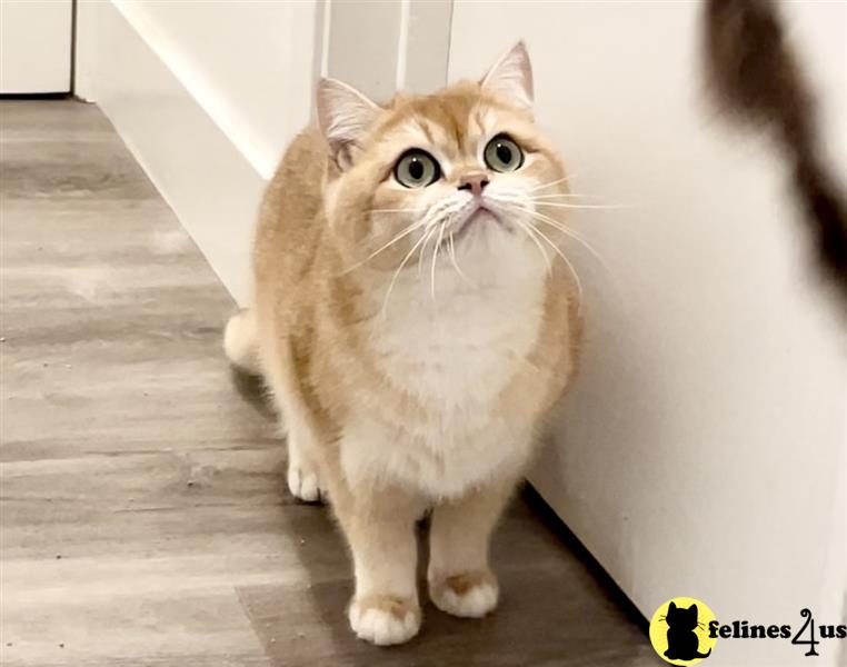 Darling is a Golden Chinchilla ny12 British Shorthair girl. Her personality is playful and and full of curiosity. She will explore around the area and check out everything once she is acclimated to the environment. Not a snuggler and more suitable for family who like more of toy interaction. Our cats and babies are raised indoor with a completely cage free environment. They are feed with high quality food and are well socialized with people 2 large dogs and other cats. All of our breeding cats are from PKD negative bloodline and had been FIV/FeLV tested with a negative result prior they enter our home and had always being raised as a strictly indoor cats only. Our kittens will be spayed neutered and have complete vaccinations/deworming prior leaving. They will have a complete health exam by my vet and will come with a 1yr genetic health guarantee. Please call or text a 858-900-8818 with any question you have. Follow Us on Our Instagram @thechubbyfacedcat