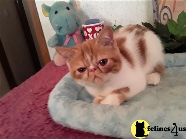 Experience the exquisite beauty of Krystals, a CFA registered Exotic Shorthair (ESH) Red/White male kitten at 6 1/2 months old. Born on May 9, 2023, he boasts a charming flat face, short nose, and captivating larger eyes—all wrapped up in a friendly demeanor. Priced at $1550, this little gem will come fully up to date on shots/wormer, and originates from PDK/FELV FIV negative lines. Located in Fort Smith, AR, prepare to welcome this sweet feline into your loving home. To catch a glimpse of Krystals and his equally stunning parents, head to our Facebook page for a new video or visit our website for more information. Don't miss out on the chance to make Krystals a part of your family today!